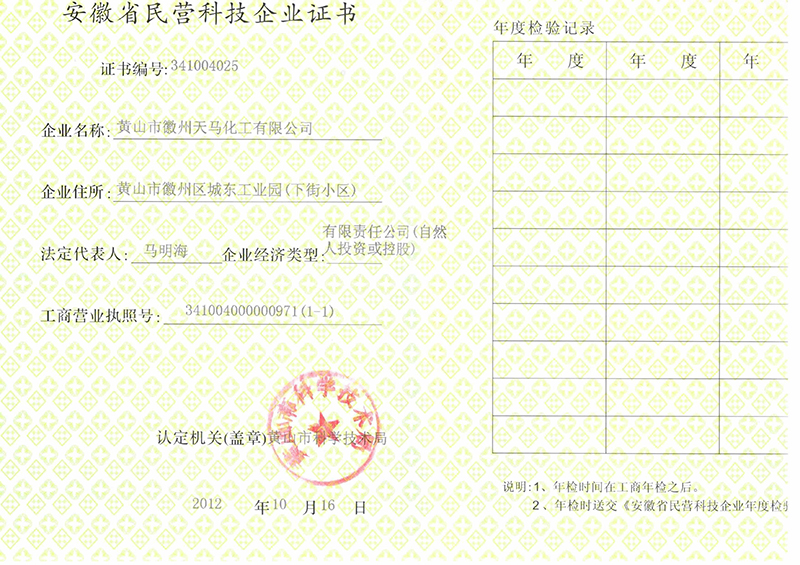 2012年安徽省民營科技企業(yè)證書