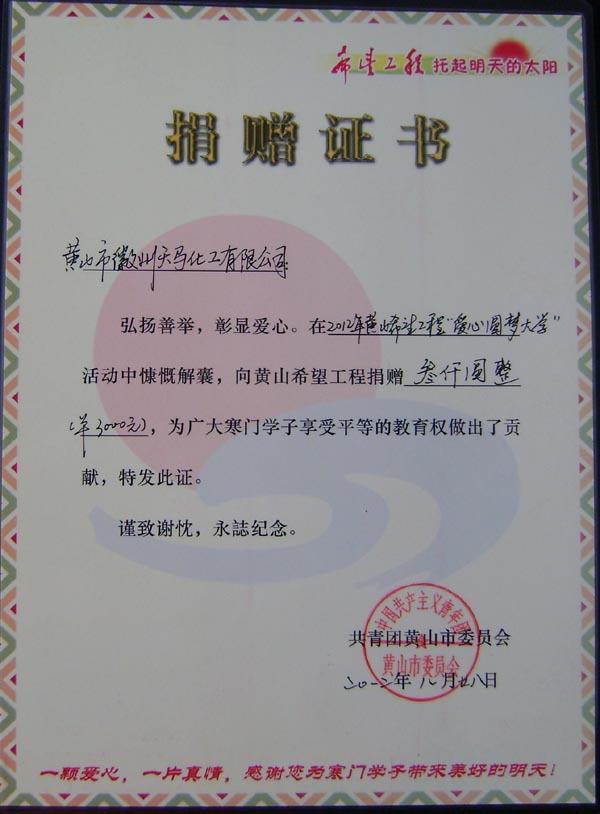 希望工程捐贈證書1